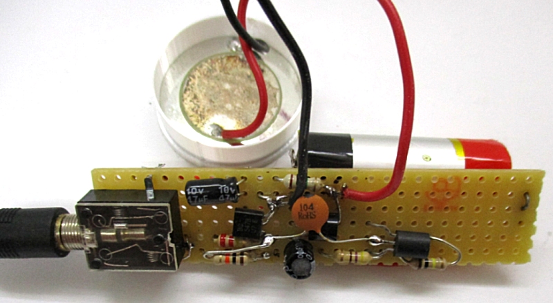 eigentliche Mikrofon ist eine Piezoscheibe, die fest eigeklebt wurde- Zuerst