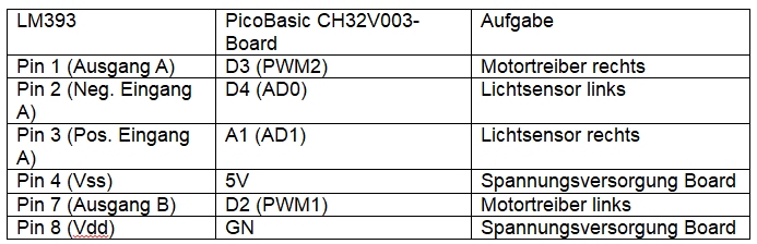 Das Board wurde mit dem Sockel des LM393 folgendermaßen verbunden:
