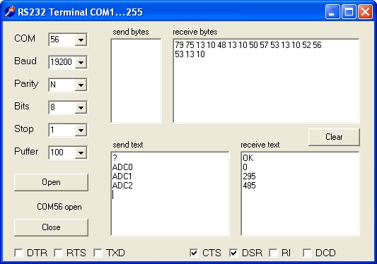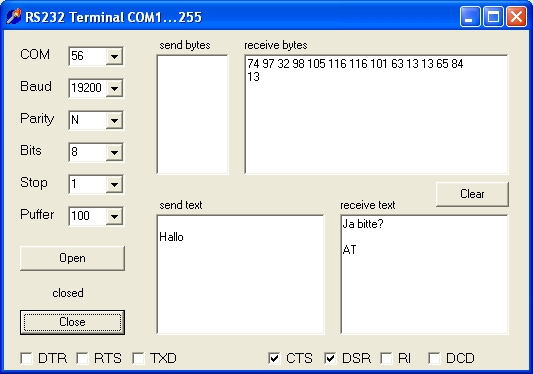 ist das Echo aktiv, alle Zeichen werden also zurückgeschickt.