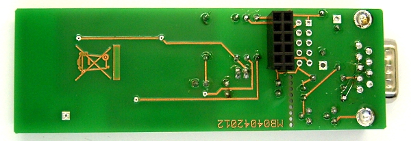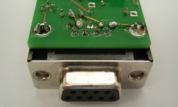 einer DB9-Buchse, sodass die Platine an einem normalen DB9-Bverlängerungskabel