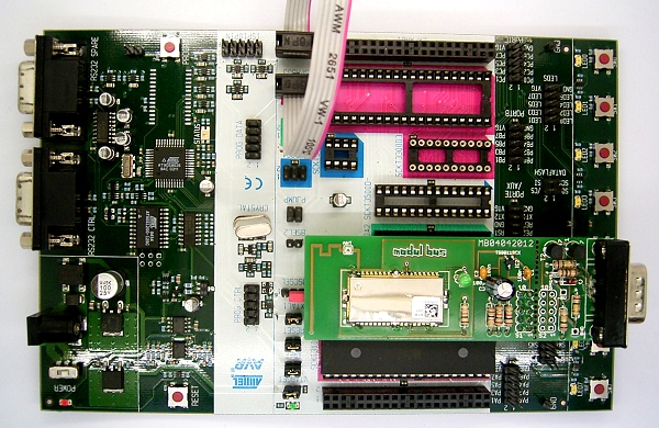 das STK500. Steckt am sie auf den Port D, erhält die Platine von dort