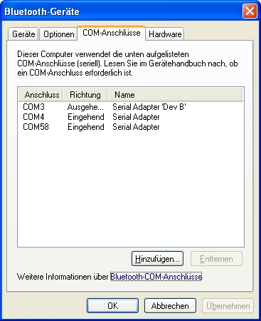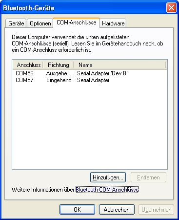Bluetooth verwendet. Die virtuelle Schnittstelle (Ausgehend) wurde in