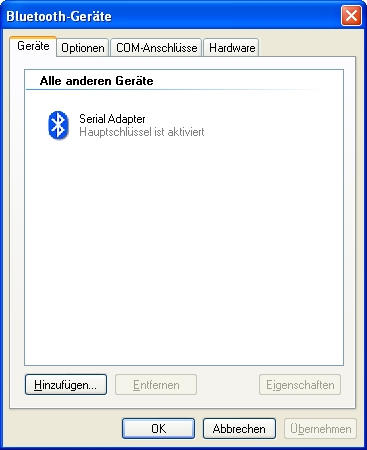 hier benötigte Serial Port Profile (SPP). Eigentlich hatten wir