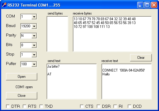 Bluetooth unternommen (siehe Bluetooth-RS232-Adapter