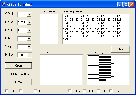 zweite Schnittstelle belauscht. Bascom sendet einfach nur beliebig lange das