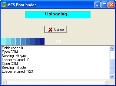 Zauberbyte 123. Sobald der Bootlader ebenfalls mit 123 antwortet, ist er