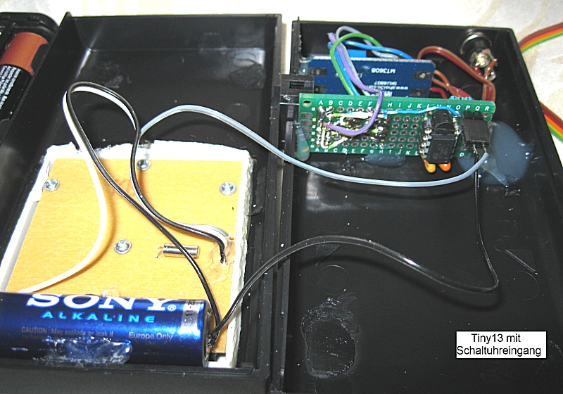 'Diese Tastensimulation mit ATtiny13 ermöglicht es mittels einer Schaltuhr,