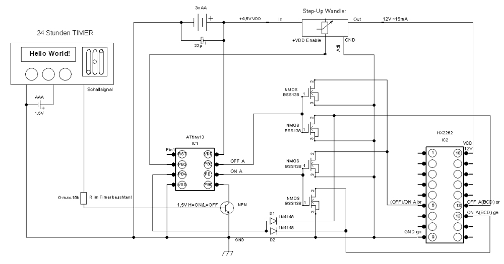 ' gezogen werden müssen und eine Pegelanpassung an die 12V des HX2262 notwendig