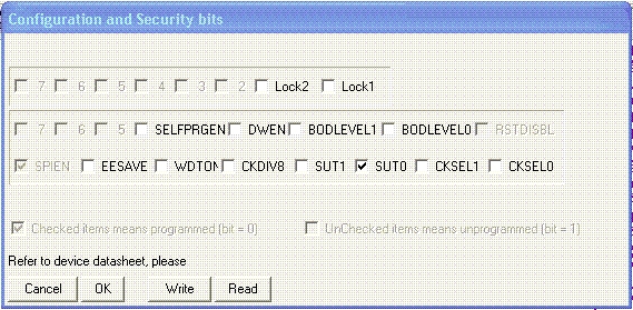 ' Fuse Bits: Nur SUT0 hat Haken im PonnyProg