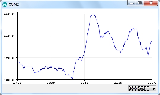 wurde mit dem Seriellen Plotter aus der Arduino-IDE aufgenommen. Dazu