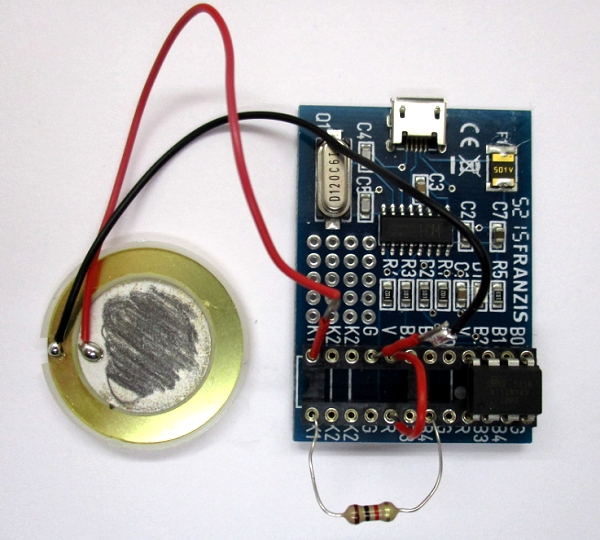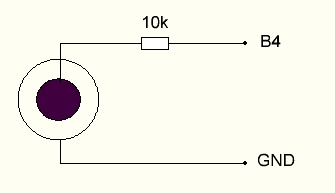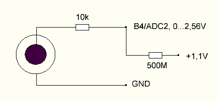 an B4=ADC2 eines Tiny85 angeschlossen. Der 10k-Widersatnd dient nur zum