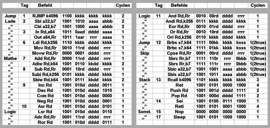 [www.atmel.com/images/doc0856] alle AVR-Befehle mit binärem Aufbau