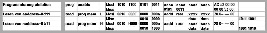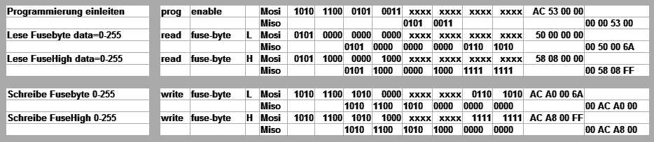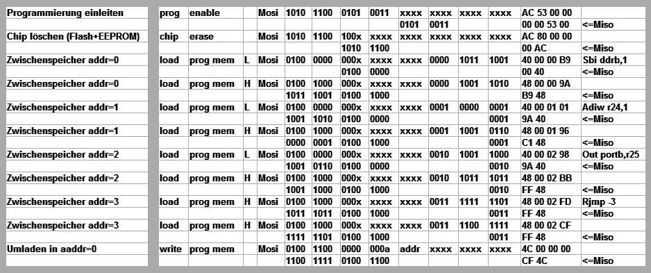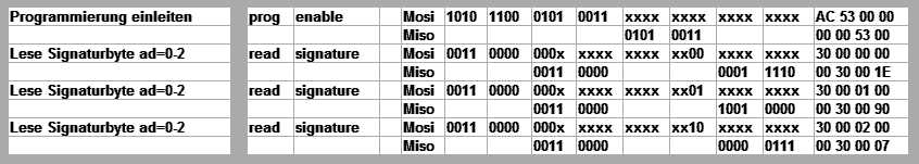 ISP-Befehle können abweichen (ggf. im Datenblatt nachsehen).