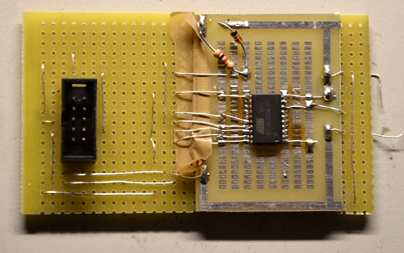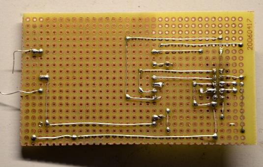 auf eine 1,27 mm einseitige Lötrasterplatine aufgebaut. Diese ist durch