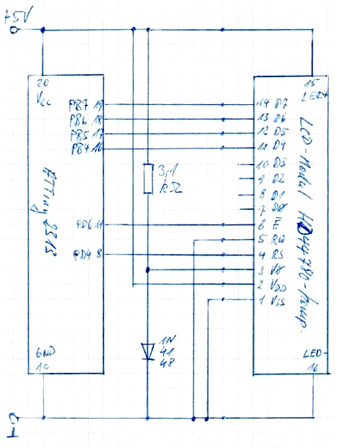1N4148 genutzt, so dass eine Kontrastspannung von etwa 0,7 V gegen