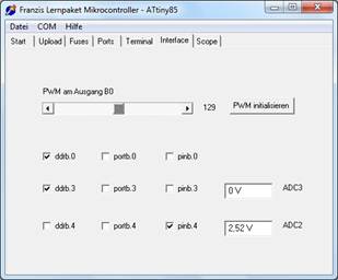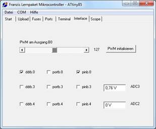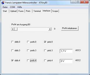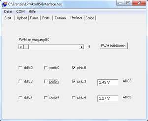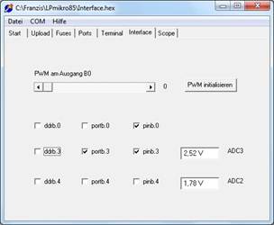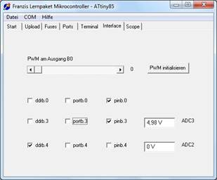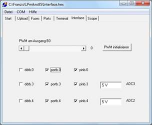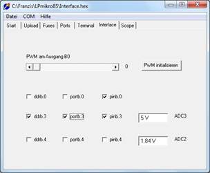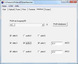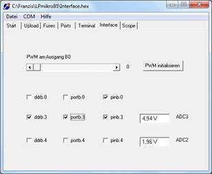 werden. Das Programm Interface.hex bietet den Zugang zu allen Anschlüssen des