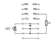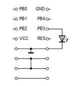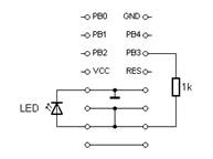eine kleine Schaltung aufgebaut werden. Am Pin PB3 soll eine LED mit