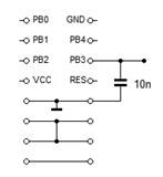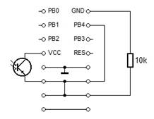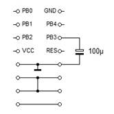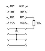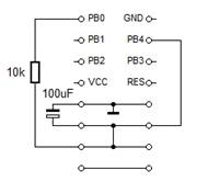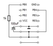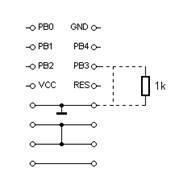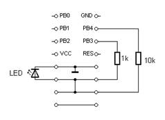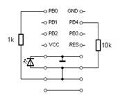 Vorwiderstand von 10 kΩ, indem Sie PB4 als Ausgang und PB3 zur