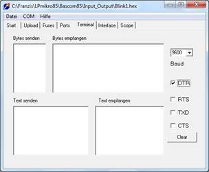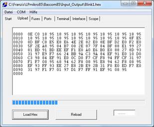 Controller geladen werden. Laden Sie das Programm Blink1.hex.