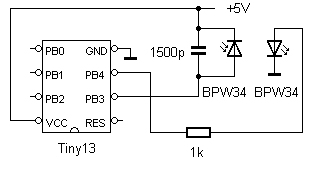 wird es spannend! Statt der LED setze ich eine zweite Fotodiode BPW34