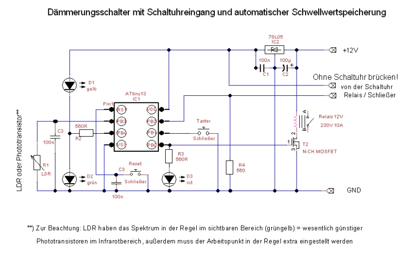 'Warten bis LDR-Spannung stabil (Parallel-C 0,1µ geladen) und Schaltuhr bereit