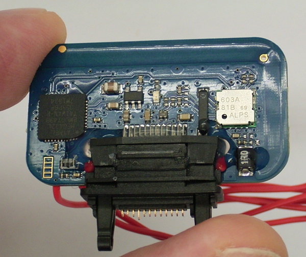 ließ sich leicht öffnen. Auf der Platine sieht man das Sendemodul und den