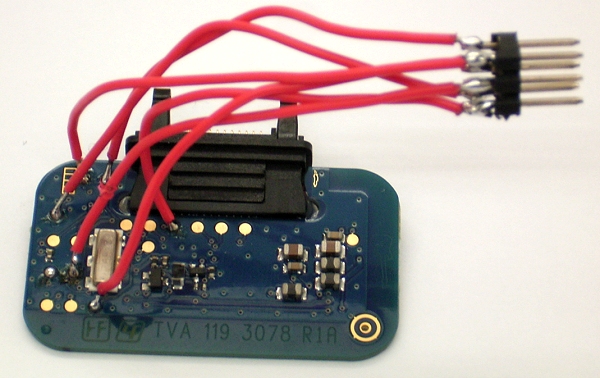 Mikrocontroller. Auf der Rückseite finden sich einige Testpunkte. Und im