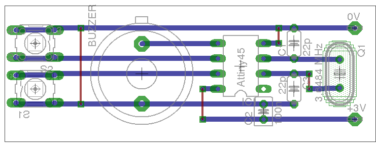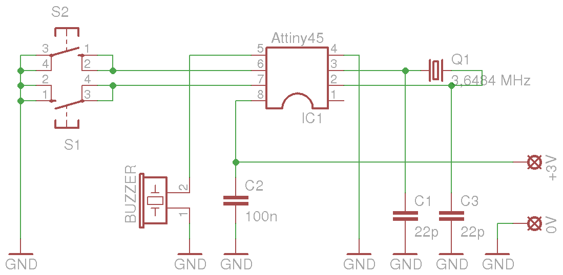 ' Da der Quarz ohne Bürdekondensatoren betrieben wird, ist der Timer grundsätzlich etwas zu schnell