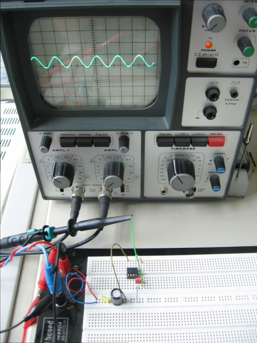 Die Variante mit 256 Schritten erzeugt zwar den reinsten Sinus, schafft aber nur relativ wenige Durchläufe und ergibt daher eine recht niedrige Maximalfrequenz.