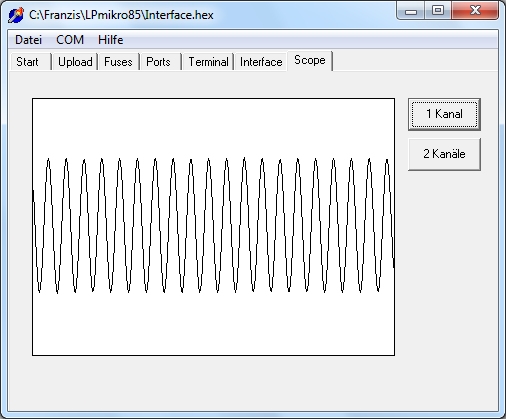 'Sound1Im ersten Versuch wurden jeweils 400 Bytes gespeichert und wieder abgespielt. Die Abtastrate musste so tief wie möglich gebracht werden, damit die Speicherzeit so lang wie möglich wurde. Könnte man wenigstens einen Klang erkennen, der in einer Endlosschleife abgespielt wird? Das soll hier mit einem zweiten Basom-Programm getestet werden.