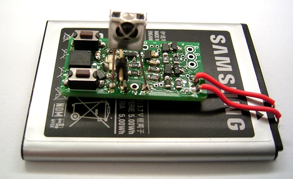 einen Li-Akku aus einem defekten Smartphone betrieben.