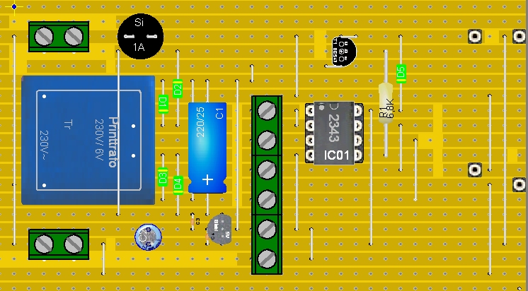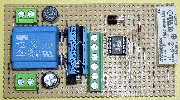 Es ist zu beachten, dass auf der Platine Netzspannung anliegt. Gerade im Bereich des Netztrafos, des Relais und der beiden 2-fach Schraubklemmen ist besondere Vorsicht geboten.