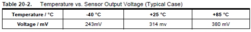 Dort steht gleich im allerersten Absatz: "The voltage has a linear relationship to temperature and the result has approximately a 1 LSB/°C correlation to temperature." Ein LSB entspricht also einem Grad Celsius.