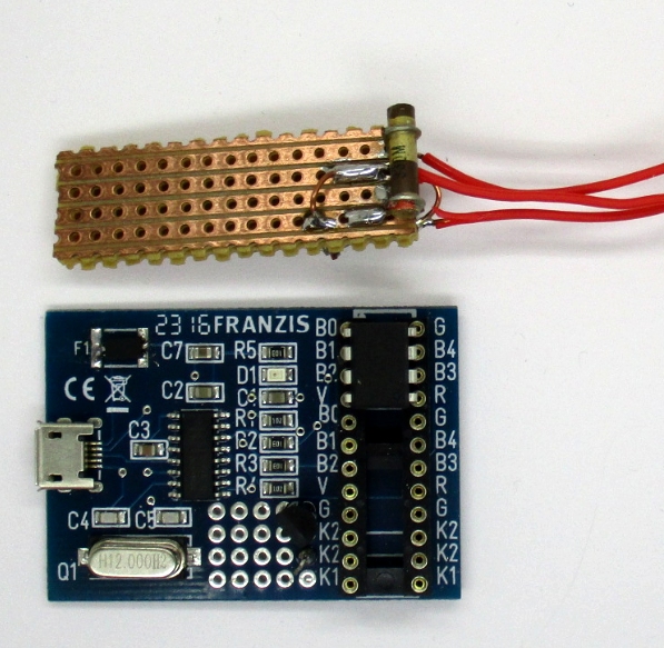 Streifenrasterplatinen gebaut. Jeder zweite Streifen liegt an