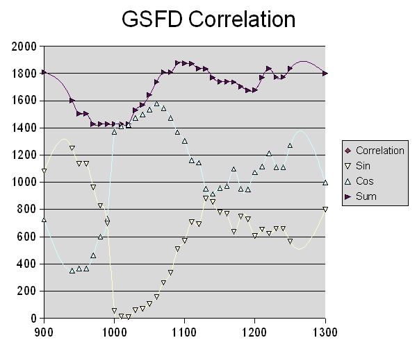 The incoming waveform is a sine wave, generated by a programmable and quartz controlled function generator, a MiniDDS in this case. The incoming frequency covers a range from 940 to 1250 Hz in 10 Hz steps, below are the results