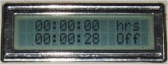 But first the time must be progammed. The next 2 buttons are used to do this. The ↔ button switches between programming hours, minutes and seconds and the inc button will increment the time. The display shows e.g. hrs on the upper right, then the inc button can increment the hours. The lower line shows the time since the unit was switched on and Off to indicate that the relais is off now.