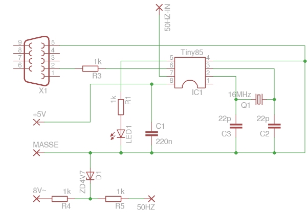 das 50Hz-Signal über den Eingang T0/PB2, dies ist der Zähleingang von