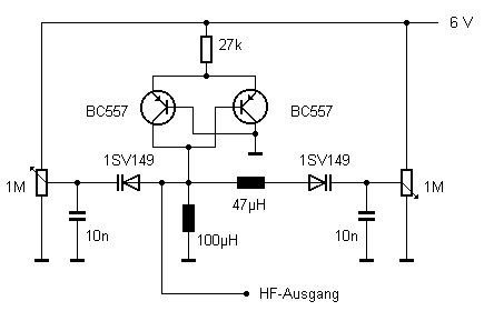 eine Oszillatorschaltung mit zwei PNP-Transistoren.