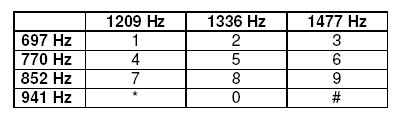Tabelle sind jeder der drei hohen Frequenzen (1209Hz, 1336Hz, 1477Hz)