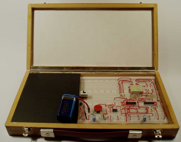 Wenn man die Schaltung in einem kleinen Koffer unterbringt, kann man das Voltmeter auch mobil und flexibel einsetzen.
