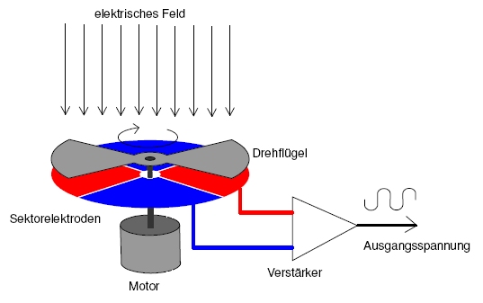 einen rotierenden Flügel welcher vor einer Messelektrode rotiert.