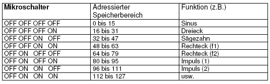 aufeinanderfolgende Speicherzellen adressiert. Über die 4 Mikroschalter