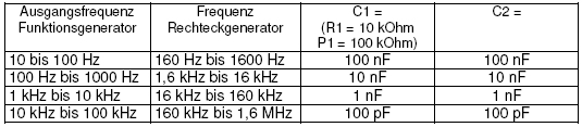 Rechteckgenerator und die dabei erzielbaren Frequenzen. Ergänzend