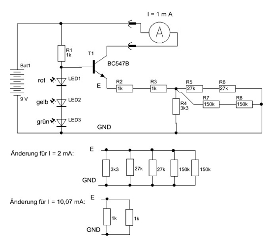 konstanten Stroms lässt sich, wie es im Schaltplan angegeben ist, je