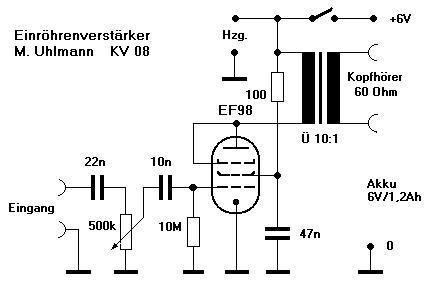 ist ein Kopfhörerverstärker mit einer EF98 für Detektor oder Audion,