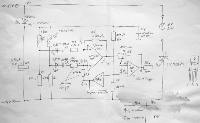 Schmitt-Trigger OpAmp 2 ausgelöst, der wiederum den Thyristor für die