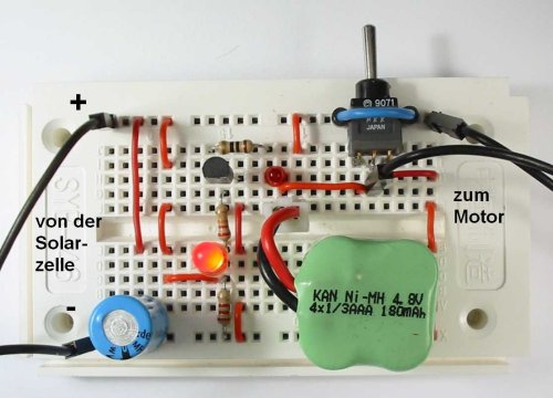 Bei maximaler Sonneneinstrahlung liefert die verwendete Zelle sogar genug Leistung, um den Ventilator ordentlich „pusten" zu lassen und gleichzeitig noch den Akku zu laden.