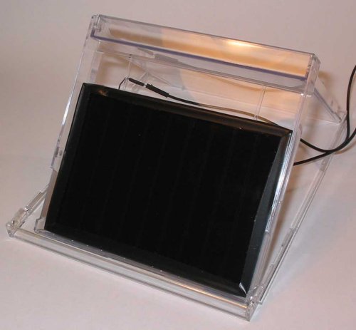 Ähnlich simpel kann man sich einen formschönen Solarzellenhalter herstellen. Benutzt wurden hier Hüllen von CDs bzw. Disketten. Mit einfachen Mitteln kann so der Anstellwinkel zur Sonne optimiert werden.