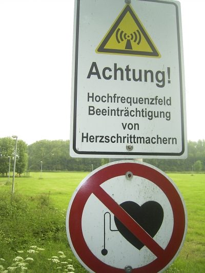 Vatertag - Motorradausflug. Mein Bruder (auch ein Vater) zeigte mir den Mittelwellensender Nordkirchen, nicht weit von seinem Wohnort. Die beiden Sendemasten mit je 100 m Höhe stehen auf einer großen Wiese, die man nur über Feldwege erreicht. Am Rande des Geländes stehen Warnhinweise. Wer einen Herzschrittmacher trägt, sollte lieber umkehren.