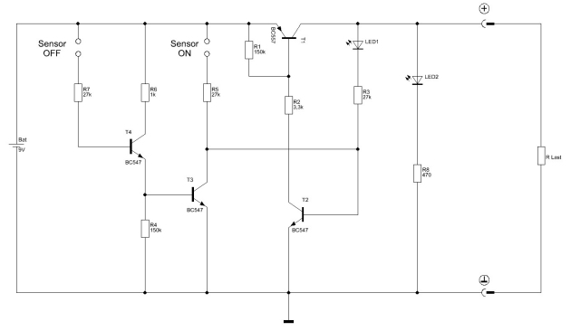 Nahezu jede elektronische Schaltung verfügt über einen Ein- und Ausschalter. Mit den Bauteilen des Adventskalenders lässt sich eine Schaltung realisieren die statt eines mechanischen Schalters zwei Sensoren aufweist, über die ein Verbraucher ein und ausgeschaltet werden kann. Durch Berühren der Sensorfläche ON wird die Batteriespannung an den Verbraucher geschaltet. Durch berühren der Sensorfläche OFF wird der Verbraucher wieder von der Batteriespannung getrennt.